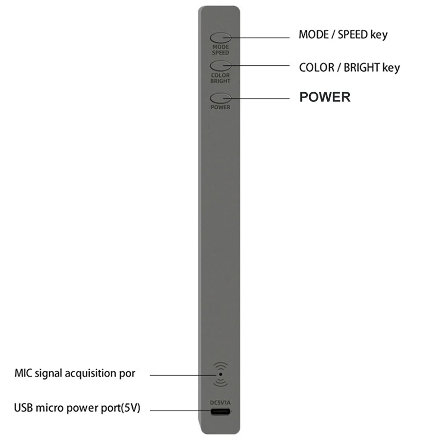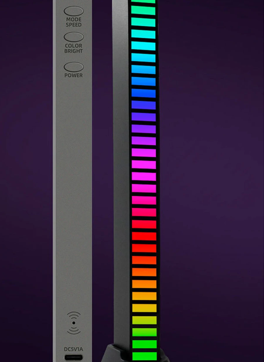 Principle: The pickup lamp automatically senses external music through the built-in microphone, synchronizes the music frequency, lights up RGB full-color LED lamp beads, presents dynamic light effects, and realizes the visual effect of music.